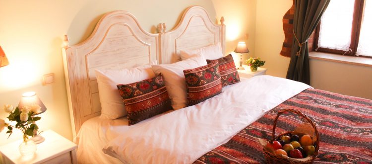 Номер расположен на первом этаже, кровати TWIN, есть возможность соединить их вместе в кровать DOUBLE, размер комнаты 16м2, с видом на сад, деревянный гардероб ручной работы с вешалками для одежды, деревянные кровати ручной работы в стиле ретро, тумбочки, натуральное хлопковое постельное белье, удобные ортопедические матрасы, прекрасное ручное кружево на окнах, ванная комната с ванной, бесплатные туалетные принадлежности, деревянный потолок, деревянный пол, тканые небольшие ковры из натуральной шерсти.